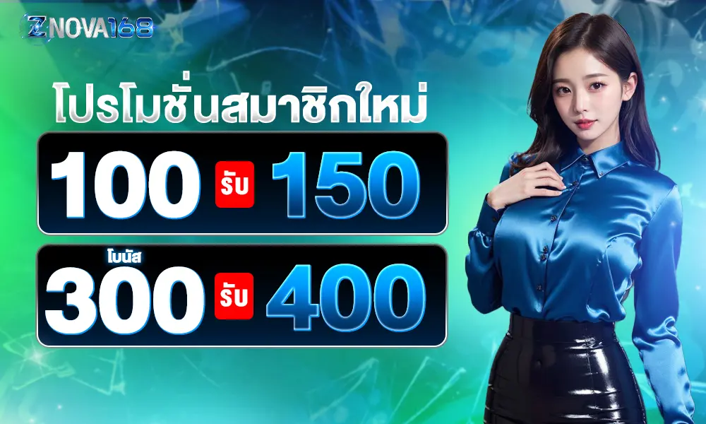 โปรโมชั่น ZNOVA168 แจกจริงทุกยูส รวมโปรสมัครใหม่ ฝาก 100 รับ 150 โปรรายวัน โบนัสคืนยอดเสีย และเครดิตฟรีชวนเพื่อน ถอนได้จริงทุกยอด 24 ชม.